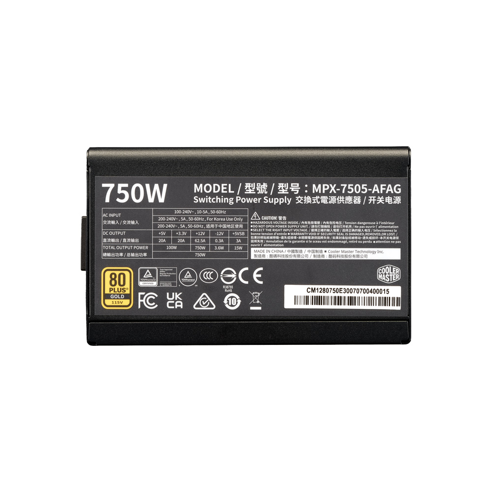FUENTE COOLER MASTER/ELITE GOLD 750W 80 PLUS GOLD MODULAR 24-PIN ATX