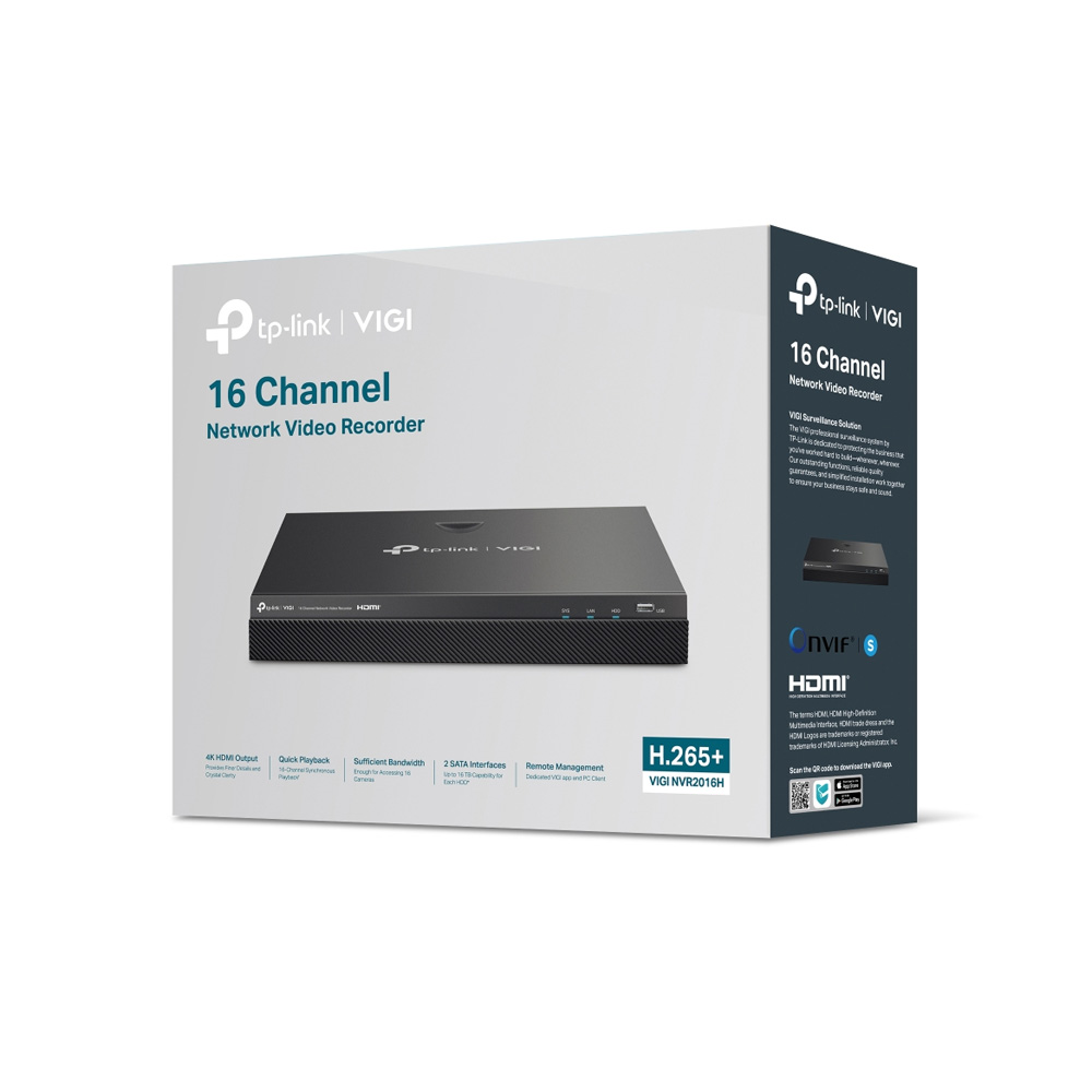 GRABADORA TPLINK/VIGI NVR2016H/16 CANALES/H.265 PLUS /ONVIF/SOPORTA 2 DISCO HASTA 10TB CADA UNO